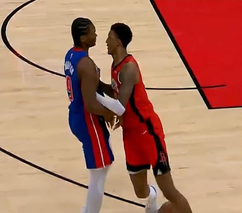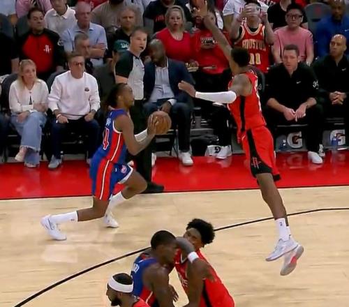 謝潑德兩個近在咫尺的上籃不進,申京也在籃下出手不進,謝潑德橫傳球失誤被活塞反擊暴扣,火箭這個陣容各種輸分。裁判叫回放火箭有6個人在場吃了一個技術犯規,小賈三分不中,伊森又一個走步失誤,杜倫推搡阿門吃T,隨后杜倫給了阿門一肘擊中頭部被吹二級惡意犯規直接驅逐,活塞在杜倫下場后進攻還給流暢,半場打完火箭56-63落后活塞。