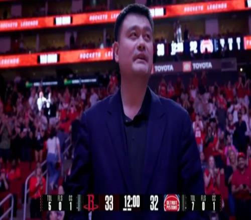 火箭名宿姚明也到場觀戰,火箭官方制作了致敬視頻。